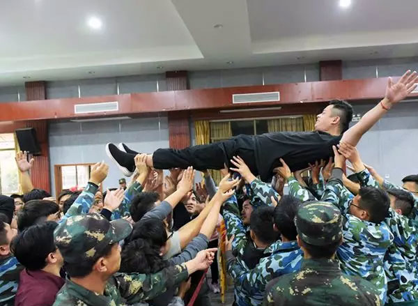我們一齊圍成一個圈,互相拍拍肩、捶捶背,認(rèn)識熟悉,鼓勁加油。玩兒個“聽口令”的小游戲,被抓到的同志可是要上臺表演節(jié)目呢!