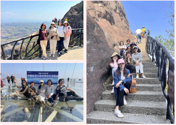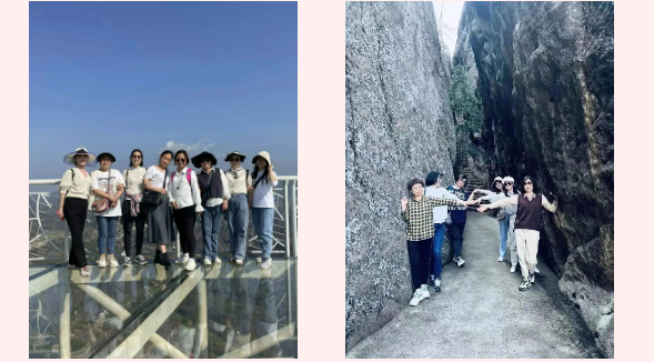 山勢陡峭而險峻,山上峭壁錯列,怪石嶙峋,巨石斜聳突兀似牛角,順南或北的險徑攀援而上,時而令人頭暈?zāi)垦?,時而令人心驚膽顫。娘子軍們氣定神閑、鼓舞加油,順利通過“玻璃棧道”、“玻璃大橋”等懸崖景點,完成石牛寨一小步,征服內(nèi)心一大步。充分展現(xiàn)出長沙市政女職工激情拼搏、團結(jié)協(xié)作的精神風(fēng)貌。